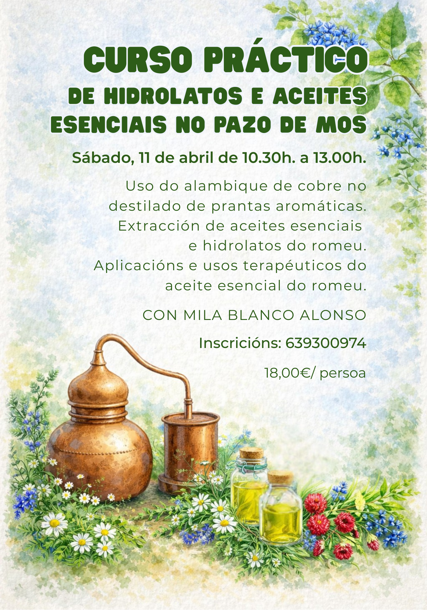Neste curso, as persoas participantes terán a oportunidade de achegarse ao proceso tradicional de destilación mediante o uso dun alambique de cobre, coñecendo de primeira man como se obteñen os hidrolatos e aceites esenciais. A sesión abordará tanto os aspectos técnicos da extracción como as aplicacións terapéuticas, centradas especialmente no romeu, unha das plantas máis representativas do noso entorno.
